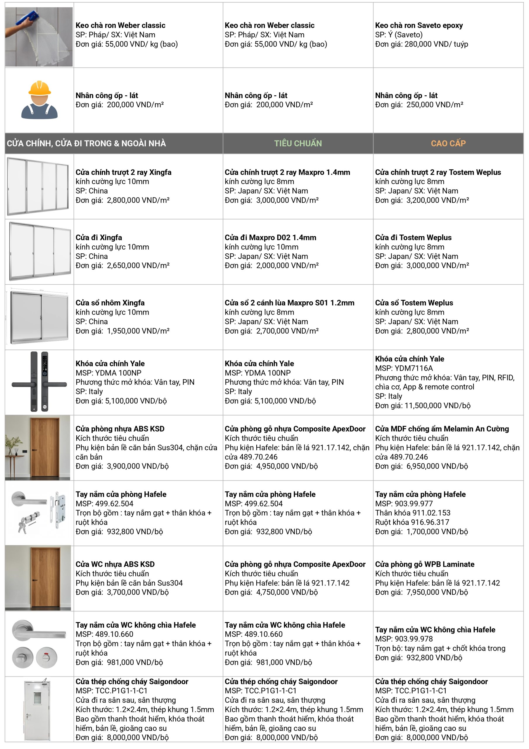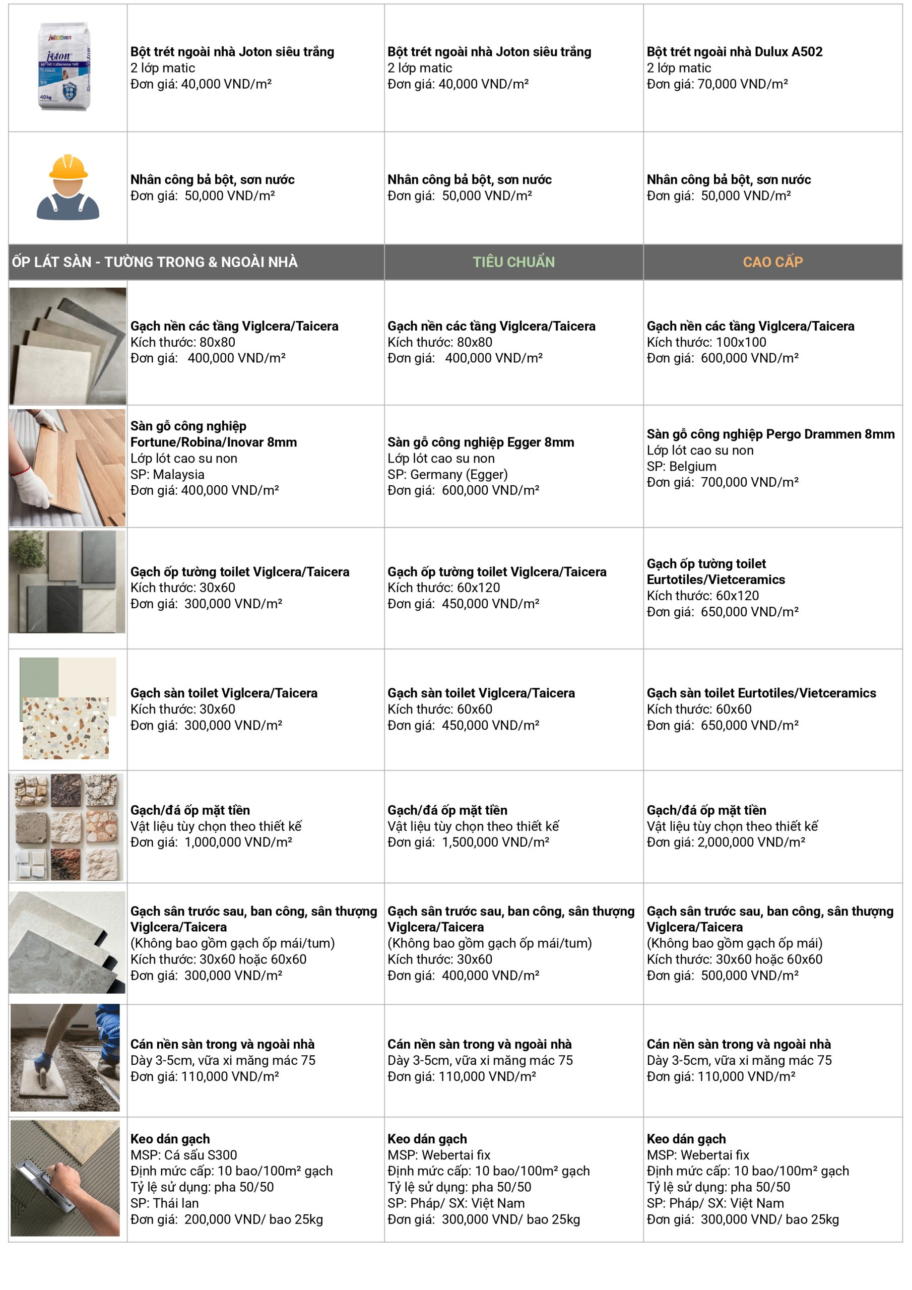 Giá xây dựng phần thô